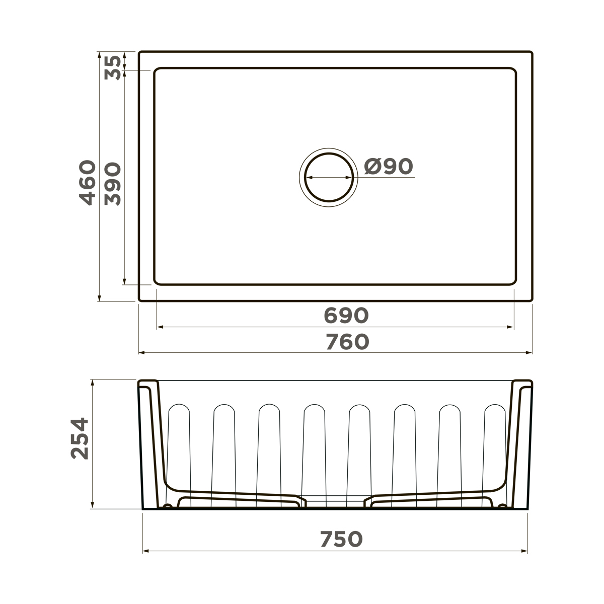 • Два разных стиля видимой фронтальной стенки. С одной стороны мойки — стенка плоская, с другой — на стенке расположены вертикальные каннелюры (элементы, выполненные в виде направленного вертикально углубления). Видимая фронтальная стенка может быть расположена как вровень с фасадами кухонного гарнитура, так и выступать вперед относительно фасадов.